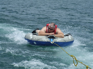 This isn't entirely a Friday Funny post - keep reading for that! There was still lots of fun on trip earlier this summer to Branson with my family. Among other things, we rented a pontoon boat and tube and spent the day on Table Rock Lake. After everyone had a turn, Miss M decided she was up for it. She told me she was really glad she tried it because it's "so much fun to go fast!" She even got back on after a pretty big spill. I worry about that girl and her love for speed sometime!